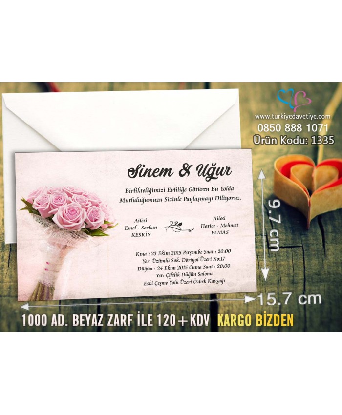 - Davetiye Ebatı 15,7 x 9,7 cm dir.