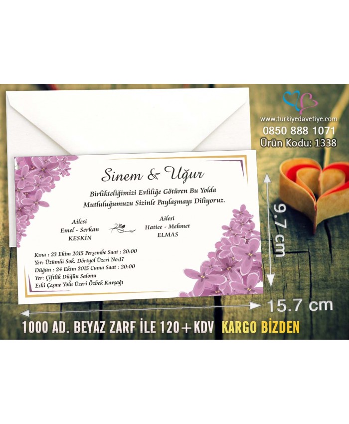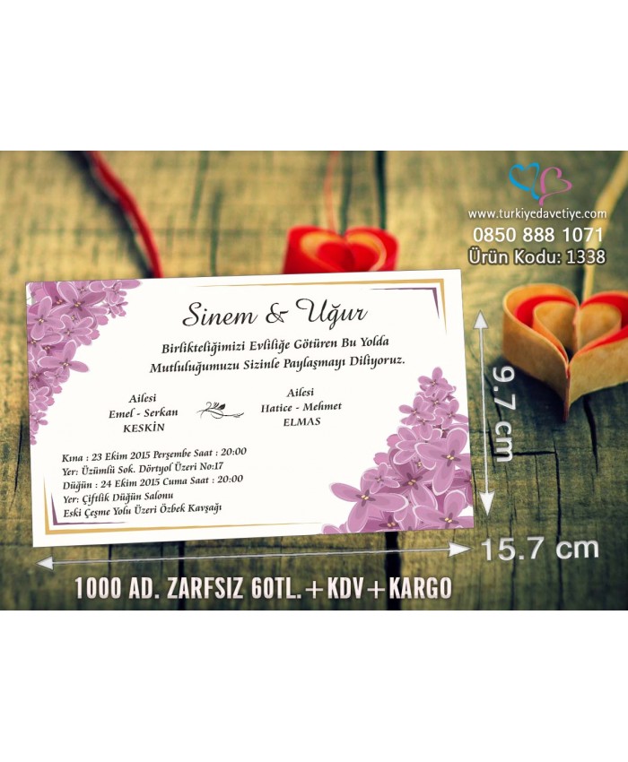 - Davetiye Ebatı 15,7 x 9,7 cm dir.