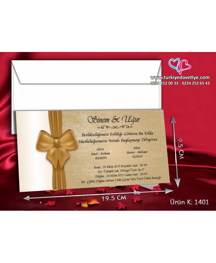 - Davetiye Ebatı 19,5 x 9,5 cm dir.