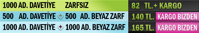 - Bu davetiyelerde baskı ücreti belirtilen fiyatın içindedir. (Baskı Ücreti Talep Edilmez)