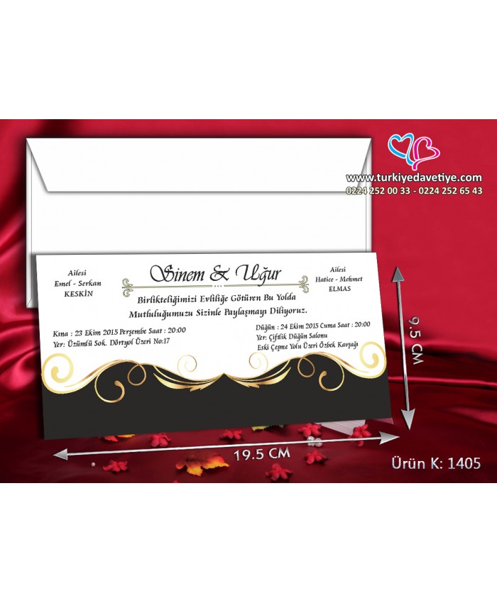 - Davetiye Ebatı 19,5 x 9,5 cm dir.
