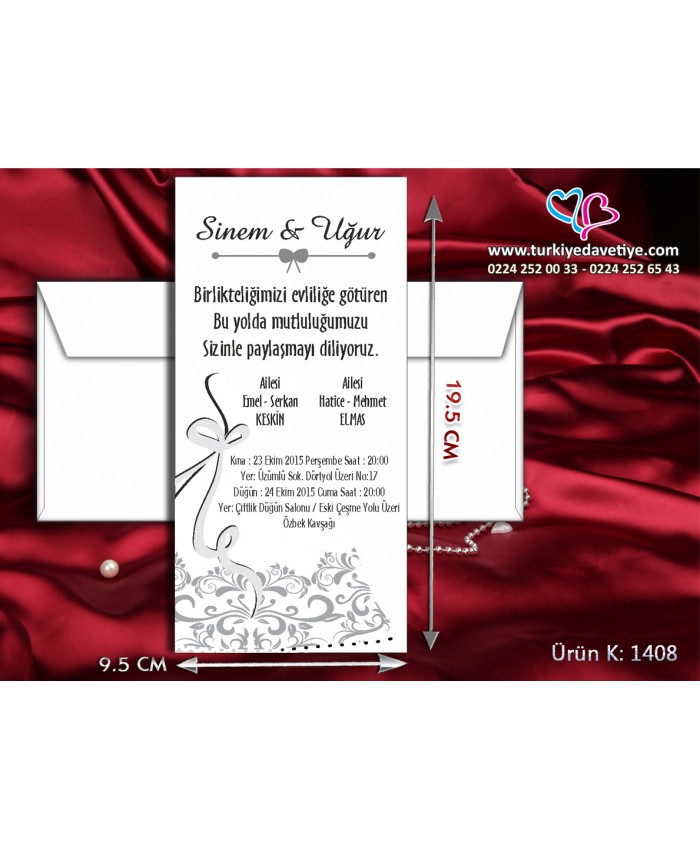- Davetiye Ebatı 19,5 x 9,5 cm dir.