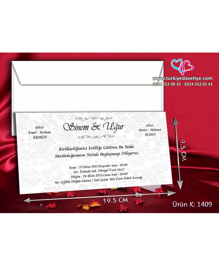 - Davetiye Ebatı 19,5 x 9,5 cm dir.
